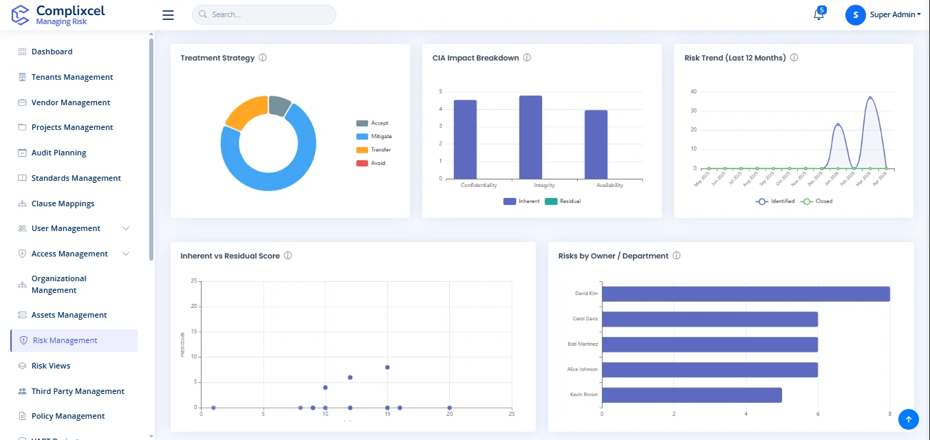 Scale standards, tasks, vendors, and risk workflows across departments with live dashboards and clear ownership